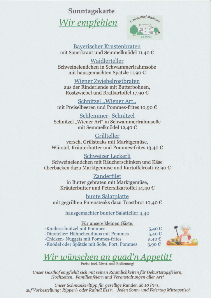 An Fronleichnam ab 11:00 Mittagstisch geöffnet | |